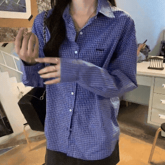 블루 격자 무늬 셔츠 재킷 새로운 셔츠 캐주얼 느슨한 긴팔 탑