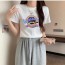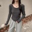 실제 가격 실제 샷 #Lace Floral Fake 2 피스 고삐 목 봄과 가을베이스 셔츠에있는 여성을위한 긴팔 티셔츠 짧은 상단 내부