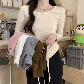 스타일의 앞쪽 어깨 롱-슬리브 티셔츠 봄과 가을 디자인 틈새 기본 셔츠 속옷 티셔츠 탑