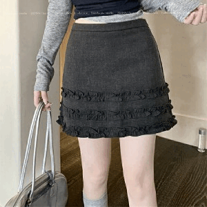 하이웨스트 실루엣과 이중 레이어 디테일이 돋보이는 블랙 스커트. 세련된 무드로 다양한 스타일링이 가능한 여성용 아이템입니다.