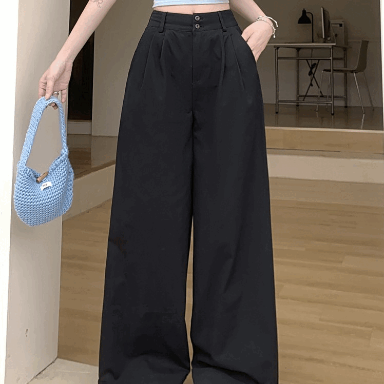 세척 면화 넓은 다리 캐주얼 바지 여성의 새로운 하이 웨이스트 슬림하고 느슨한 직선 바지