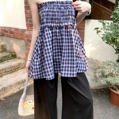 진짜 샷 진짜 가격 ~ 격자 무늬 2 피스 끈이없는 치마 여자 드레스 짧은 치마 작은 A- 라인 우산 스커트 짧은 치마