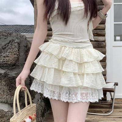 Sweet Girl 스타일 레이스 케이크 스커트 여성을위한 새로운 뜨거운 여자 A- 라인 다목적 푹신한 짧은 치마
