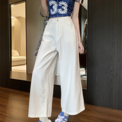 허리가 높은 여성을위한 미국 레트로 세척 넓은 레그 청바지가 높습니다.