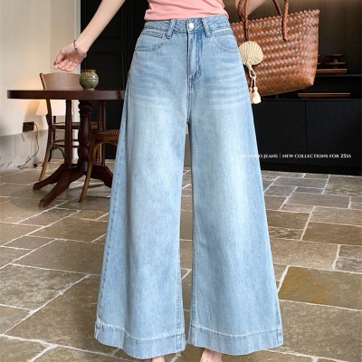 여성의 새로운 하이 웨이스트 슬림 한 연속 및 다재다능한 작은 바지를위한 레트로 와이드 레그 청바지