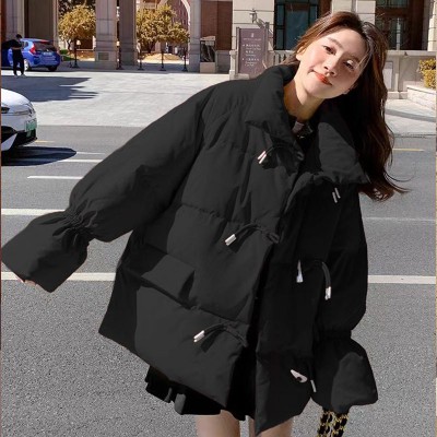 센 부서 여성 면 옷 2025 새로운 한 부서 루즈핏 소뿔 버클 단추 스탠드 칼라 두꺼운 쇼트 스타일 빵 면 의류 트렌디