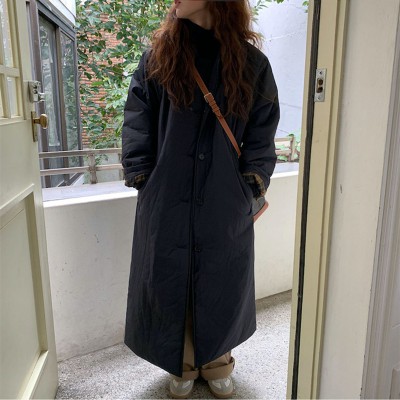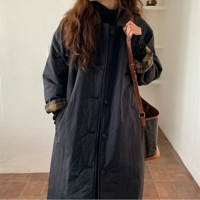 스팟 한국 ins 따뜻하게 지내라. 슬림 클래식 단순한 소매 격자 무늬 장식 플러스 코튼 재킷 코튼 코트 목화 의류