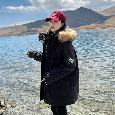커플 워크웨어 아래 면화 의류 여성 2025 년 새로운 중간 길이 큰 모피 칼라 두꺼운 Parker 서비스 겨울 재킷