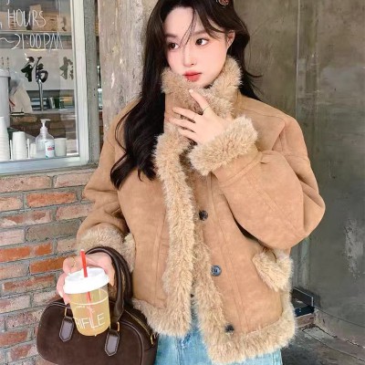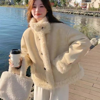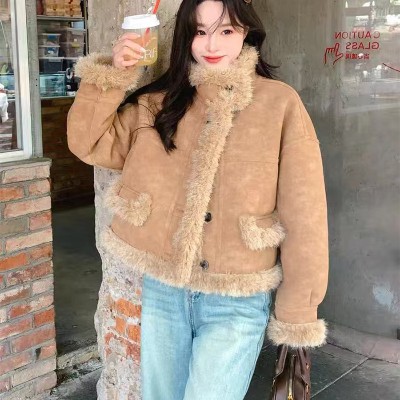 개체 매장 피모 하나 여성 코트 겨울 새로운 두꺼운 쇼트 스타일 작은 키 레트로 양털 면 의류 트렌디
