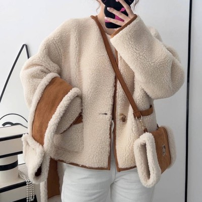 25 겨울 보온 양털 코트 피모 하나 양면 착용 모피 재킷 두꺼운 면 의류 3종
