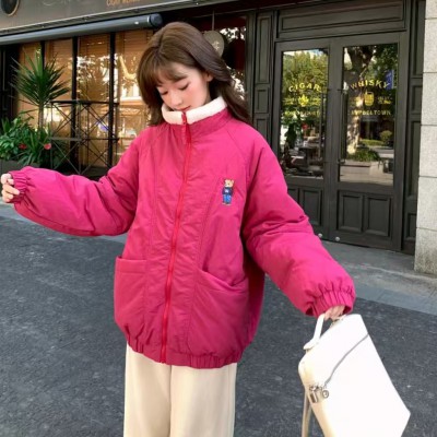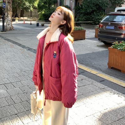 당점 실사 작은 곰 자수 용과 스탠드 칼라 마이크로 주름 질감 센스 디자인 다용도 보온 면 옷 여성 재킷