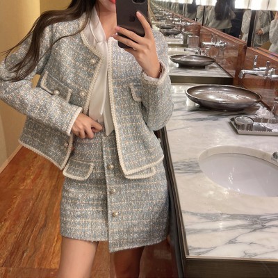 가을 새로운 레트로 트위드 작은 향기 정장 카디건 코트 불규칙한 짧은 스커트
