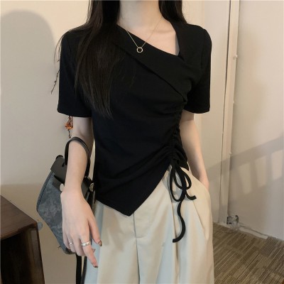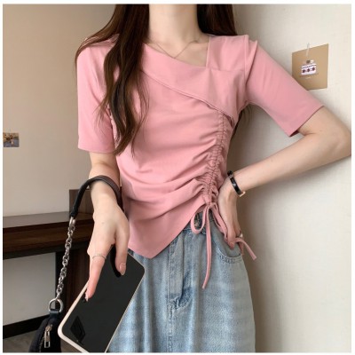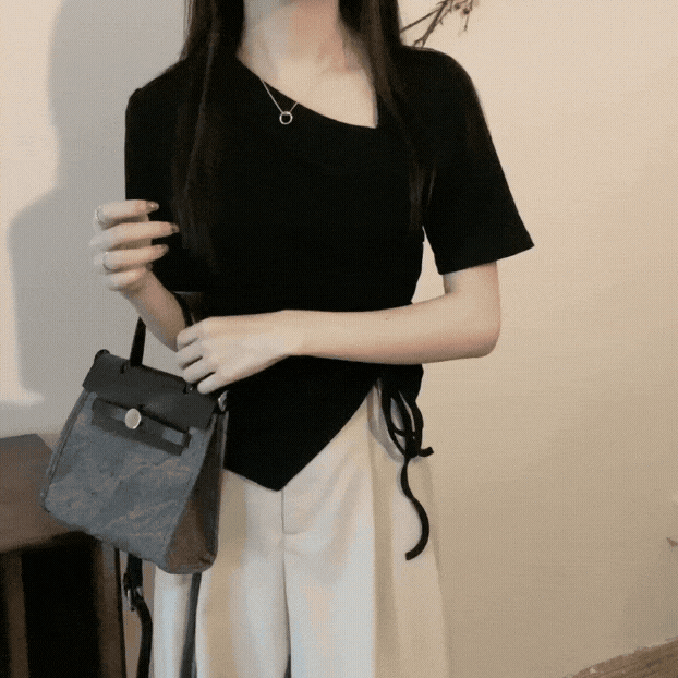[당일발송] 사이드 셔링 브이넥 크롭 반팔 티셔츠