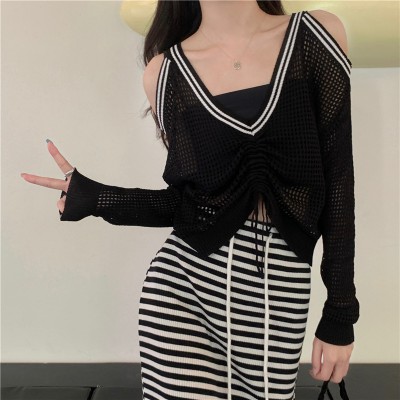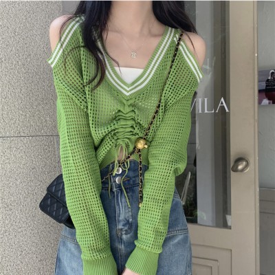 [당일발송] 나그랑 펀칭 셔링 브이넥 니트