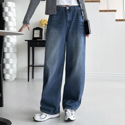 여성 데일리 와이드 바지 여자 와이드데님 뒷밴딩 팬츠