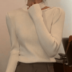 슬림 V- 넥 퍼프 슬리브 디자인 내부 레이어 두꺼운 스웨터베이스 스웨터의