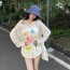 여름 홍콩 스타일의 레트로 레터 인쇄 느슨한 넓은 버전 중간 길이의 짧은 소매 티셔츠 어깨 패드 탑 트렌디